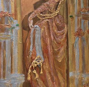 Op 22 september gaat "Jonckvrouwe "(500 euro) uit logeren bij vrienden in Delft. Ze mag daar 4 a 5 weken aan de muur prijken. Daarna wordt beslist of ze haar houden of dat ik haar kleiner en kleuriger opnieuw mag maken (dus in opdracht).
