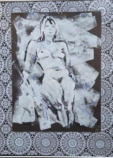 18 september komt mijn laatste VTVmodel voor een krijt- en een acrylschets. Een jaar geleden begon ik buren van VTVBlijdorp te vragen model te zitten.