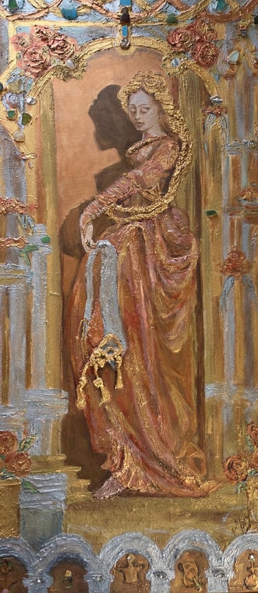 acryl op doek & board (80x80cm) in vergulde lijst van 93x93 cm (1000 euro)