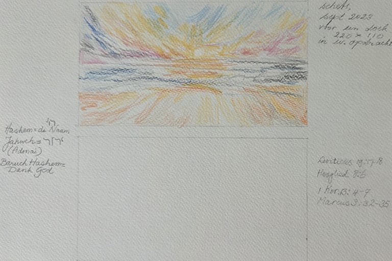 Begin september bezig met een mogelijke opdracht (groot doek, 220x110, acryl, zand,bijbelteksten en naam God in goud).